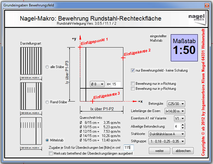 Durch die Einbettung der Makros zur Bewehrungsplanung in