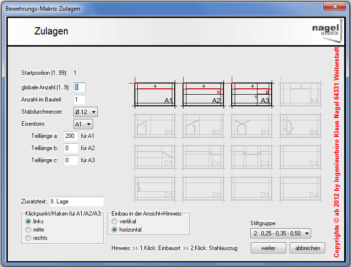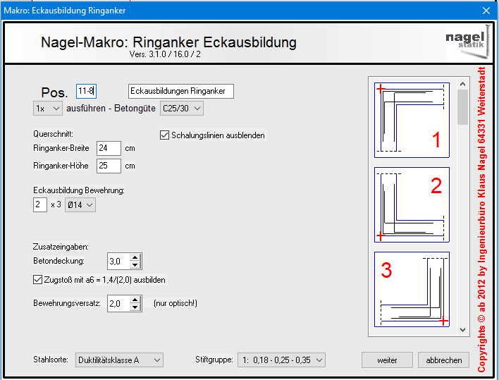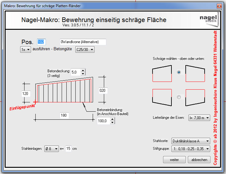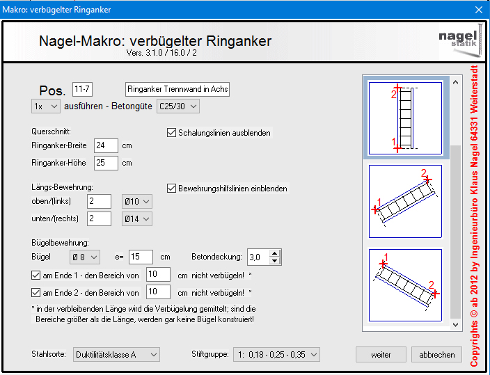 anfallenden Aufgaben angepasst. Bevor ein Bewehrungmakro
