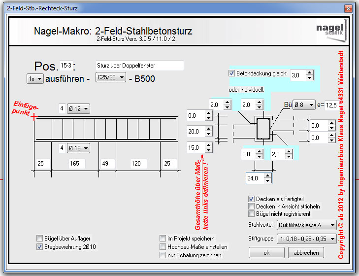 7.) individuelle (vertikale) Bügelbewehrung