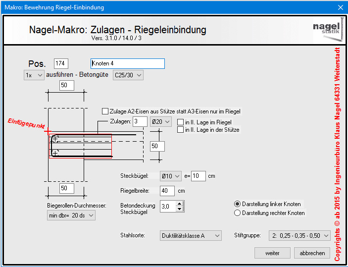 2.) Zulagen Rahmeneckknoten (mit negativem Moment)